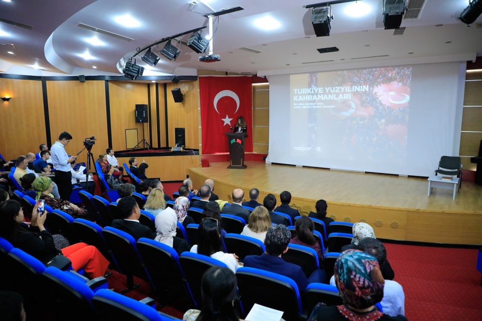 Türkiýäniň Türkmenistandaky ilçisiniň orunbasary Gülşah Jumurju dabarada eden çykyşynda 7 ýyl mundan ozal Türkiýe Respublikasynda bolup geçen gynandyryjy wakalar barada durup geçip, bu çärede şol wakalarda gurban bolanlary ýatlaýandyklaryny belledi.