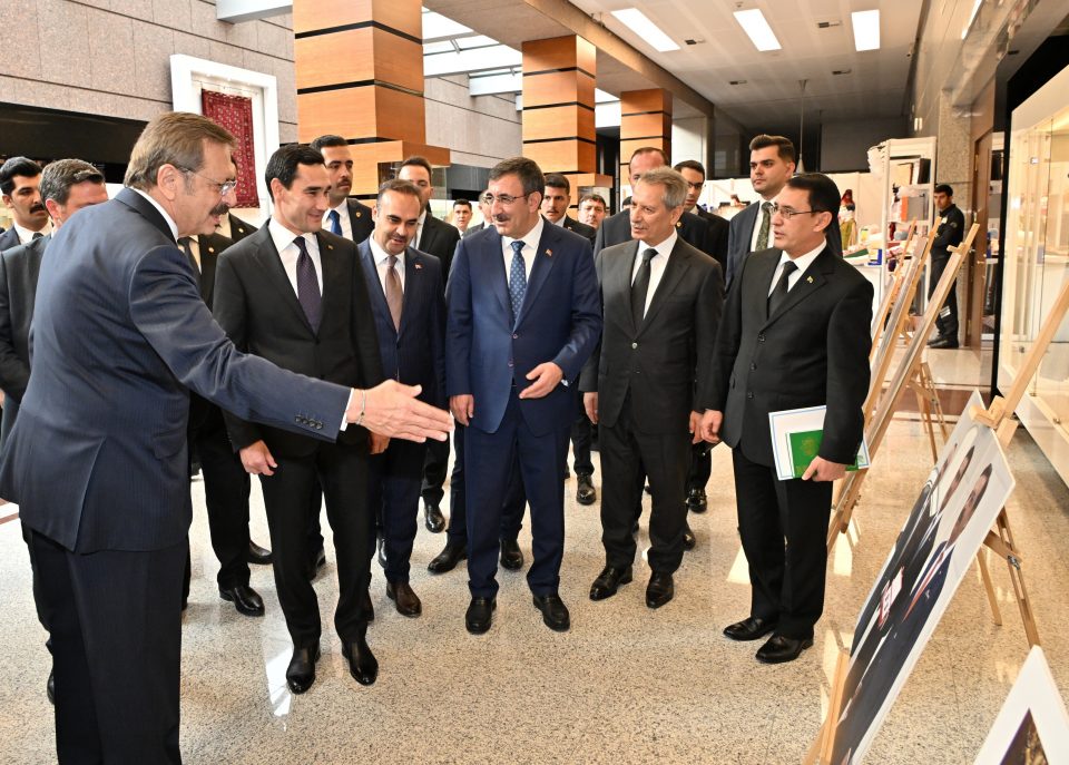 Işewürlik maslahatynyň geçýän ýerinde hormatly Prezidentimiz Türkiýäniň Palatalar we biržalar birleşiginiň başlygy hem-de senagat we tehnologiýalar ministri tarapyndan mähirli garşylanyldy. Soňra olar bilelikde bu ýerde guralan Türkmenistanyň önümleriniň sergisine aýlanyp gördüler.