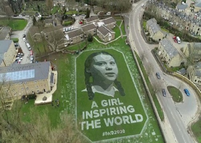 8-nji mart – Halkara zenanlar güni mynasybetli Greta Tunbergiň äpet uly suraty janlandyryldy. Şwesiýaly ekologiýa abadançylygyň waspçysy bolan Greta Tunbergiň muşdagy onuň suratyny mekdebiň futbol meýdançasyna çekdi. Bu mekdepde suratkeşiň gyzy hem okaýar. Suratkeş özüniň döredijilik işini Halkara zenanlar gününe bagyşlady. Onda Greta Tunbergiň suraty we “Dünýä ylham berýän gyz” atly ýazgy ýerleşdirildi.