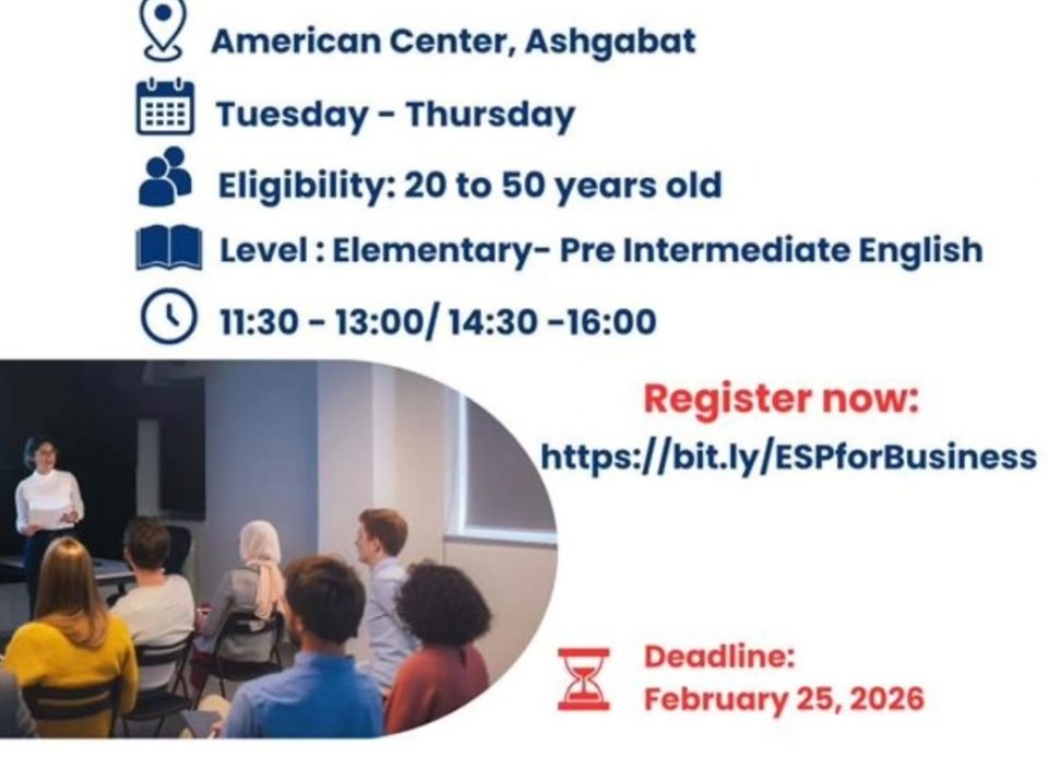 ABŞ-nyň Aşgabatdaky Ilçihanasy sizi “Biznes Iňlis dili” kursyna gatnaşmaga çagyrýar!