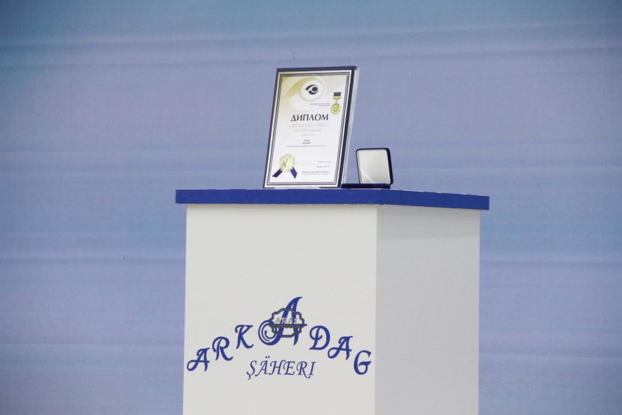 Soňra dabaranyň esasy pursady gelip ýetdi: Ýewraziýa patent edarasynyň ýolbaşçysy G.Iwliýew Arkadag şäherine Ýewraziýa Patent Guramasynyň W.I.Blinnikow adyndaky altyn medalyny dabaraly ýagdaýda gowşurdy. Medaly Türkmenistanyň Prezidentiniň ýanyndaky Arkadag şäheriniň gurluşygy boýunça döwlet komitetiniň başlygy D.Orazow kabul etdi.