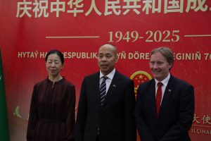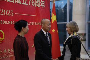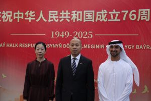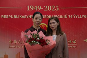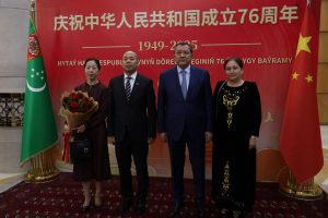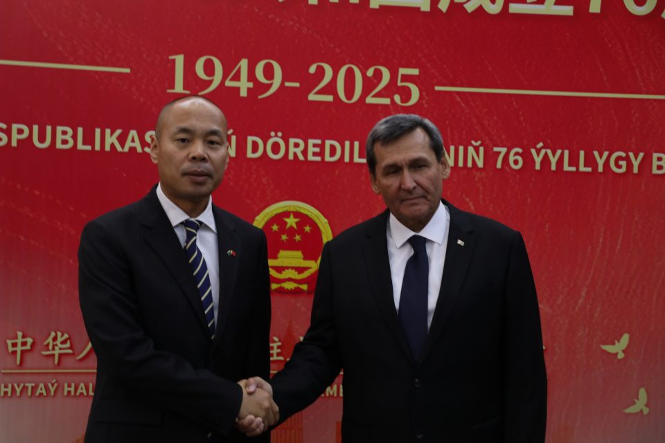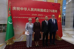 Paýtagtymyz Aşgabadyň “Ýyldyz” myhmanhanasynda Hytaý Halk Respublikasynyň döredilmeginiň 76 ýyllygyna bagyşlanan dabaraly kabul edişlik çäresi geçirildi. Hytaýyň Türkmenistandaky ilçisi Szi Şuminiň gatnaşmagynda geçirilen dabara “Ata Watan Media” topary hem gatnaşdy.