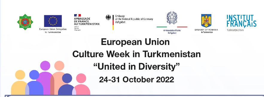 24 — 31-nji oktýabrda Ýewropa Bileleşiginiň Türkmenistandaky wekilhanasynyň edara binasynda Fransiýanyň, Germaniýanyň, Italiýanyň, Rumyniýanyň ýurdumyzdaky ilçihanalarynyň bilelikde guramagynda Ýewropanyň Medeniýet hepdeligi geçiriler.