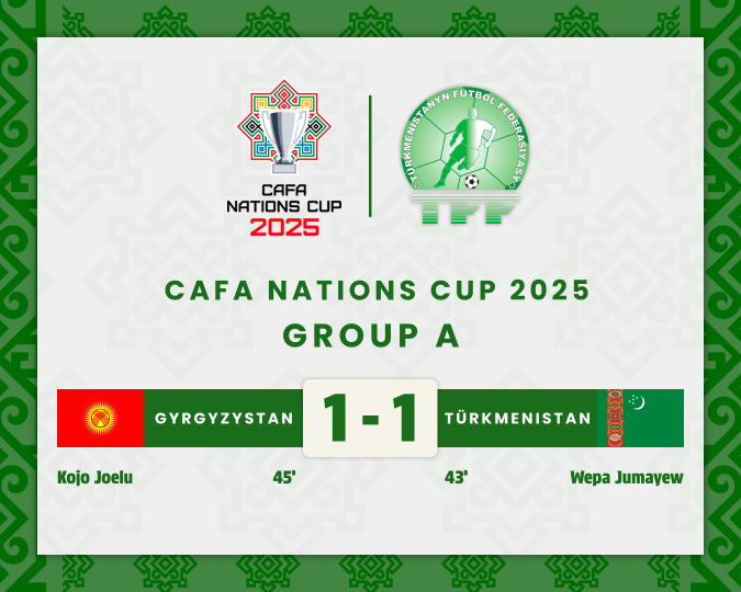 Şu gün, 30-njy awgustda CAFA Milletler kubogynda milli ýygyndymyz ilkinji duşuşygynda Gyrgyzystanyň garşysyna meýdança çykdy. Oýnuň ilkinji minutlarynda Gyrgyzystanyň milli ýygyndysy topa has köp erk etmegi başardy. Emma şondan soňra milli ýygyndylaryň ikisi hem garşylyklaýyn hüjümleri köp geçirdiler. Şeýle hüjümleriň birinde bolsa Mirza Beknazarowyň pasyna Wepa Jumaýew ýetişip oýnuň 43-nji minudynda hasaby açmagy başardy (0:1).