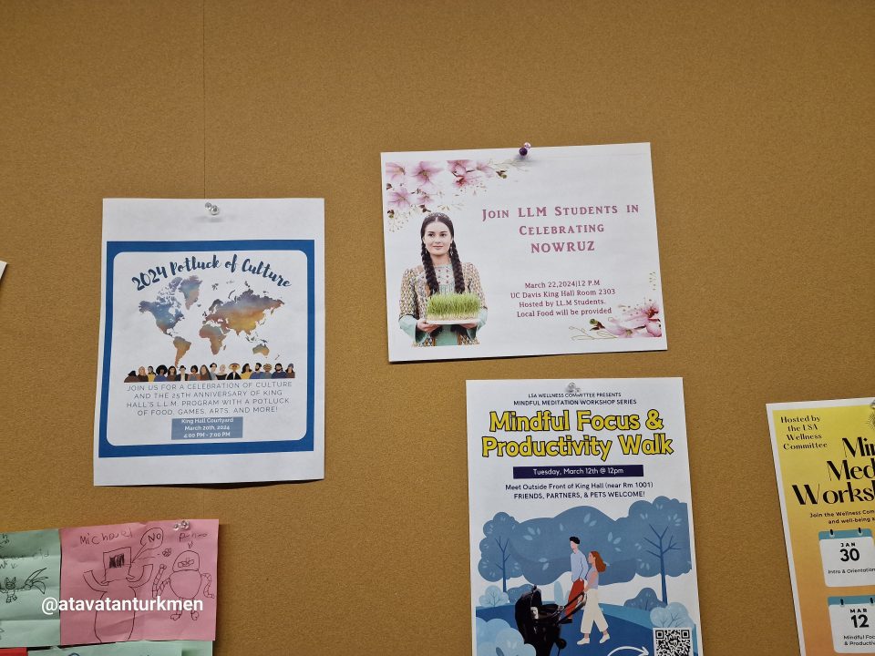 2016-njy ýylyň 30-njy noýabrynda Birleşen Milletler Guramasynyň Bilim, ylym we medeniýet boýunça guramasynyň (ÝUNESKO) Adamzadyň maddy däl medeni mirasynyň sanawyna girizilen Halkara Nowruz güni üstümizdäki ýylda ABŞ-nyň meşhur Kaliforniýa uniwersitetiniň Dawis hukuk fakultetinde hem bellenilip geçiler.