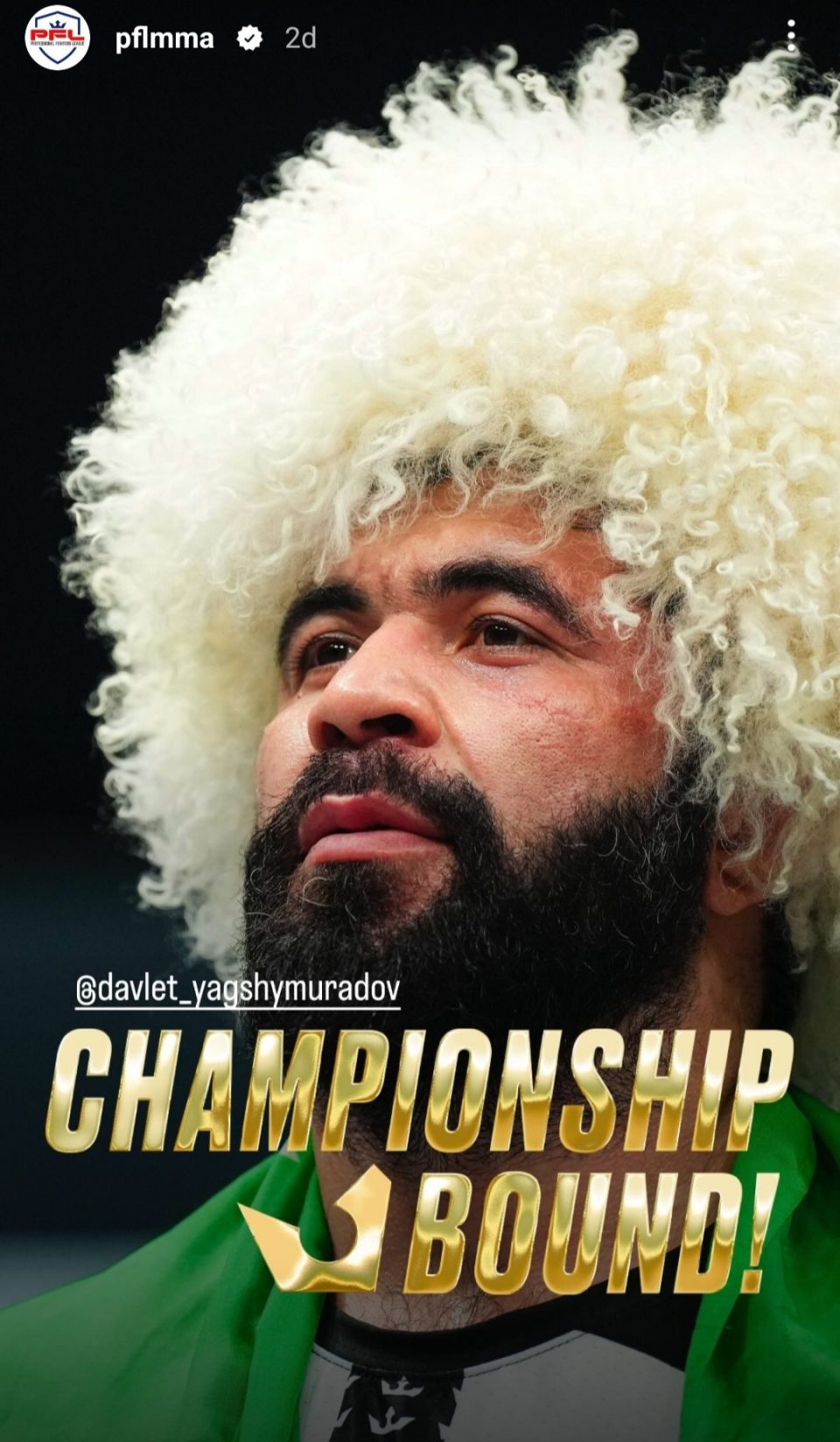 Şeýlelikde, Döwletjan Ýagşymyradow ýaryşyň finalynda çykyş etmäge hukuk gazandy. Türkmen pälwany PFL-iň Gran-prisiniň finalynda Impon Kasanganyň garşysyna çykar. Tutluşygyň anyk senesi soň bellener.