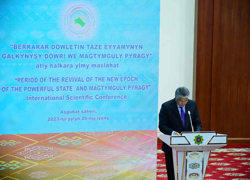 Magtymguly adyndaky Türkmen döwlet uniwersitetinde daşary ýurt alymlarynyň, magtymgulyşynaslaryň, ýokary okuw mekdepleriniň rektorlarynyň, köpçülikleýin habar beriş serişdeleriniň wekilleriniň we ýurdumyzyň döredijilik işgärleriniň, şeýle-de ýokary okuw mekdepleriniň professor-mugallymlarynyň gatnaşmagynda «Berkarar döwletiň täze eýýamynyň Galkynyşy döwri we Magtymguly Pyragy» atly halkara ylmy maslahat öz işine başlady. Halkara ylmy maslahatyň başynda Türkmenistanyň Mejlisiniň Başlygy D.Gulmanowa Türkmenistanyň hormatly Prezidenti Serdar Berdimuhamedowyň halkara ylmy maslahata gatnaşyjylara iberen Gutlagyny okady.