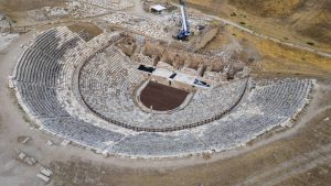 This year, one of the most remarkable finds was the Scylla statues, discovered in the ancient city of Laodicea in Denizli. The extraordinary sculptures included the head and hand of the man-eating monster Scylla, the body of Odysseus, two upper-body statues belonging to his companions who were attacked and killed by wild dogs around Scylla’s waist, and Odysseus’ ship’s bow. They stand out with their well-preserved original paint and baroque style of the Hellenistic period. UNESCO site Aphrodisias in Aydın was also on the agenda with a giant Zeus head sculpture. The nearly 2,000-year-old statue was found intact with minimal damage and fascinating details. Another notable discovery was from Kahramanmaraş. A 13,000-year-old bone sewing needle was found in the Direkli Cave, regarded as “the foundations of the city’s current textile structure in archaeological settlements”.