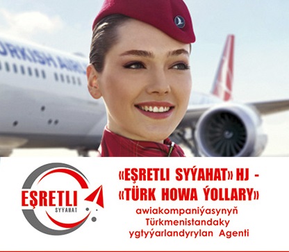 Ýokary hilli syýahatçylyk hyzmatlaryny hödürleýän “Eşretli Syýahat” hojalyk jemgyýeti Aşgabat-Stambul-Aşgabat ugry boýunça arzan bahaly bilet mümkinçiliginden peýdalanmaga çagyrýar. “Türkhowaýollary” awiakompaniýasynyň Aşgabat-Stambul-Aşgabat ugry boýunça uçar gatnawynyň awiabiletiniň bahasy bary-ýogy 490 ABŞ-nyň dollaryna deňdir.