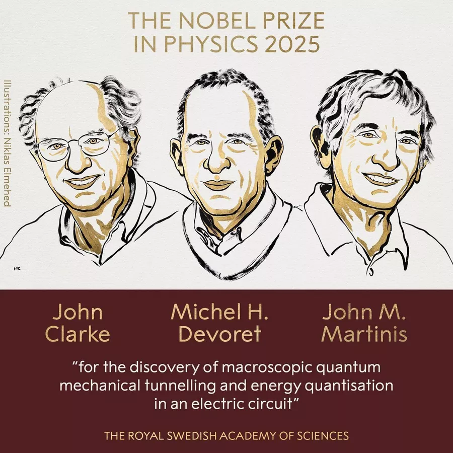 2025-nji ýylyň fizika boýunça Nobel baýragy amerikan uniwersitetlerinden bolan kwant fizikasynyň alymlaryna berildi: Beýik Britaniýadan Jon Klark, Fransiýadan Mişel Dewore we ABŞ-dan Jon Martinis bu baýragyň eýeleri boldy.