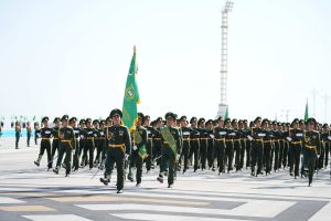 Türkmenistanyň Goranmak ministrliginiň Berdimuhamet Annaýew adyndaky 1-nji Ýöriteleşdirilen harby mekdebiniň harby okuwçylary bu günki dabaraly harby ýörişde özleriniň ýaş watançy nesillerdigini subut etdiler. Olaryň sazlaşykly we ynamly gadamynda ata Watanymyza, hormatly Belent Serkerdebaşymyza wepalylyk, kasama ygrarlylyk duýuldy.
