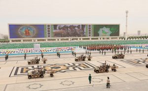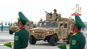 Ata Watanymyzyň asuda asmanynyň, parahat zemininiň mukaddes goragynyň ygtybarly gollardadygyny ykrar edip, dabaraly harby ýörişde harby gullukçylaryň ussatlyk bilen erk eden söweşjeň awtoulaglary, sowutlanan tehnikalary, dikuçarlary, uçarmansyz uçýan enjamlary munuň aýdyň mysalydyr.