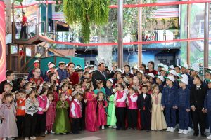 “Ata Watan Media” toparynyň hem gatanaşan çäresinde haýyr-sahawat gaznasynyň hasabyna bejergi alan ýurdumyzyň ýaş raýatlary, Döwletliler köşgünde terbiýelenýän çagalar hem-de Arkadag şäherinde geçirilýän halkara matematika olimpiadasyna gatnaşmaga gelen dünýäniň dürli döwletleriniň mekdep okuwçylary “Arkaç” söwda-dynç alyş merkezi bilen tanyşdylar.