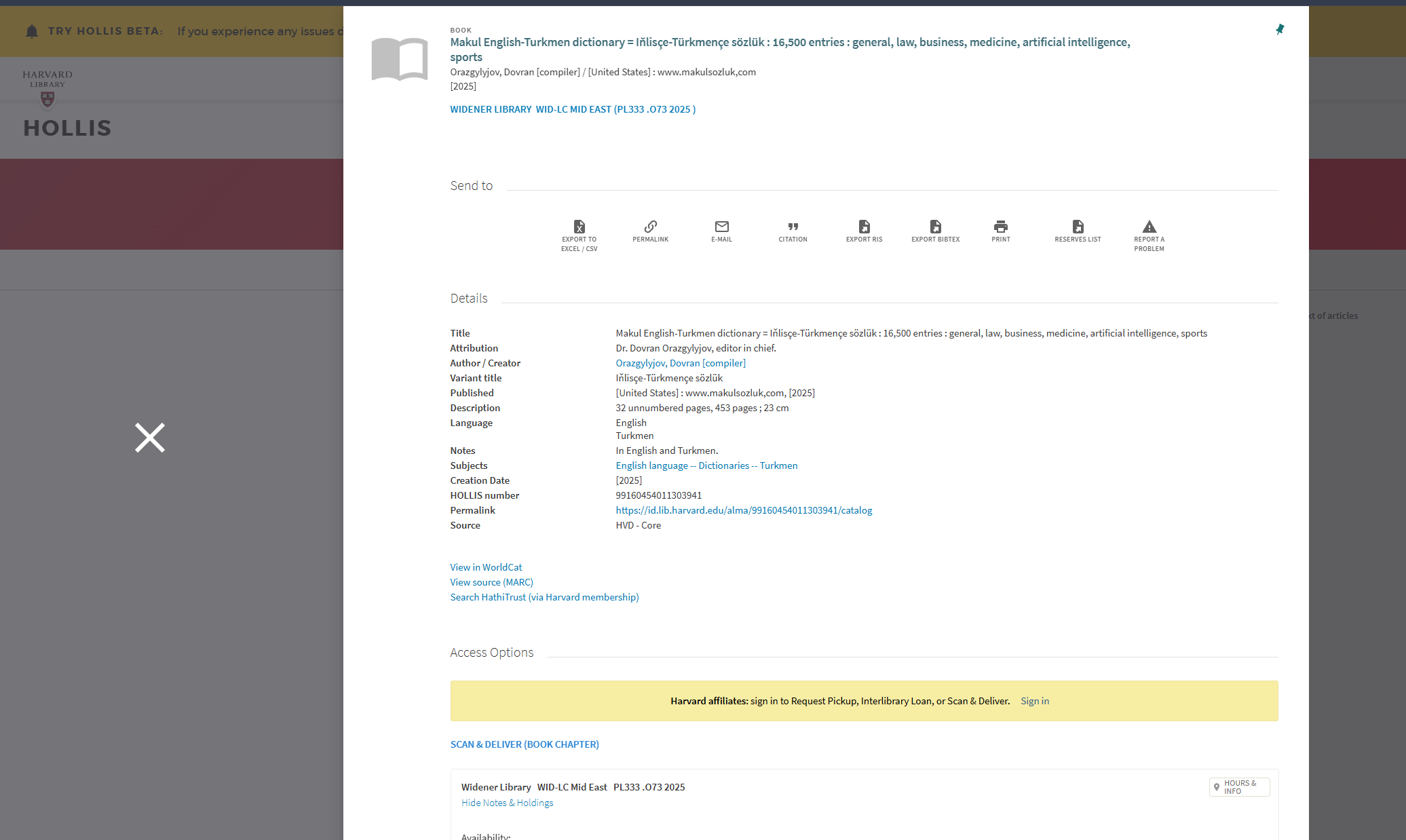 Resmi katalog maglumatlary (HOLLIS)