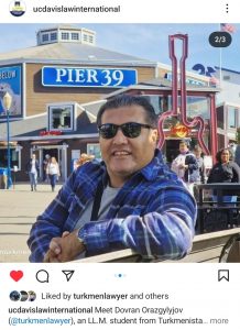 ABŞ-nyň Kaliforniýa ştatyndaky abraýly ýokary okuw jaýlarynyň biri bolan Kaliforniýa Uniwersitetiniň Dawis Hukuk Fakulteti, Türkmenistanly hukukçy Dr. Döwran Orazgylyjow bilen geçirilen ýörite söhbetdeşligi özüniň LinkedIn, Facebook we Instagram jemgyýetçilik torlarynda köpçülige hödürledi. Bu söhbetdeşlik Döwran Orazgylyjowyň akademik we hünär tejribesi barada giňişleýin maglumat berip, onuň Türkmenistan, Türkiýe we ABŞ-daky bilim ädimlerini we hukuk ugrundaky baý tejribesini öz içine alýar. Döwran Orazgylyjow hukuk ugrundan bakalawr, magistr we ylymlaryň doktory derejelerini Türkiýede alandygyny aýtdy.