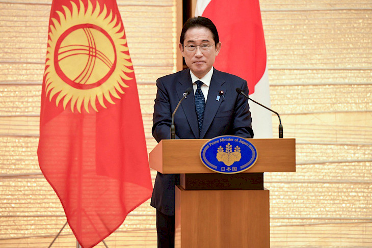 Ýaponiýanyň Premýer-ministri Fumio Kisida Gyrgyz Respublikasynyň Prezidenti Sadyr Žaparow bilen Tokioda geçiren gepleşiklerinden soňra metbuagat beren beýanatynda Merkezi Aziýa döwletleri bilen gatnaşyklary pugtalandyrmagyň Ýaponiýanyň gaýragoýulmasyz wezipeleriniň biri bolup durýandygyny belledi.