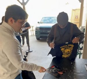 Sapar wagtynda “Atavatan Media” toparynyň ýaş wekili Ysmayyl, bu ýeriniň eýesi we “Pawn Stars” gepleşiginiň esasy şahsyýeti bolan Rik Harrison bilen duşuşyp, Türkmenistan barada gysgaça maglumat berdi. Rik Harrison Ysmaýyla gol çekilen fotosuraty we sport köýnekçesini sowgat berdi.