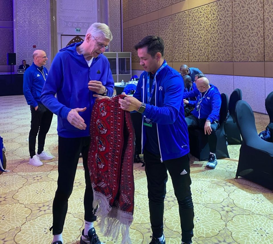 Türkmenistanly FIFA-nyň tehniki hünärmeni Röwşen Meredow düýn Kataryň paýtagty Doha şäherinde başlanan okuw maslahatynda ady rowaýata öwrülen tälimçi Arsen Wengere türkmen halysyny sowgat berdi. Bu barada “jankoyer.com.tm” neşiri habar berýär.