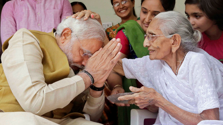 Şu ýylyň iýunda aýynda Hiraben Modi 99 ýaşady. Şu hepdäniň ortalarynda Modi hassahana ýerleşdirildi. Ogly Narendra Modi ejesini hassahanada baryp gördi.