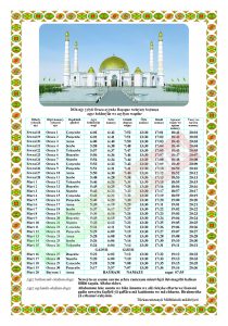 Şu ýerde Oraza aýynda Aşgabat, Arkadag şäherleri we Ahal welaýaty, şol bir wagtda Balkan, Daşoguz, Lebap we Mary welaýatlary boýunça agyz beklenýän we açylýan wagtlary baradaky maglumatlary dykgatyňyza ýetirýäris.