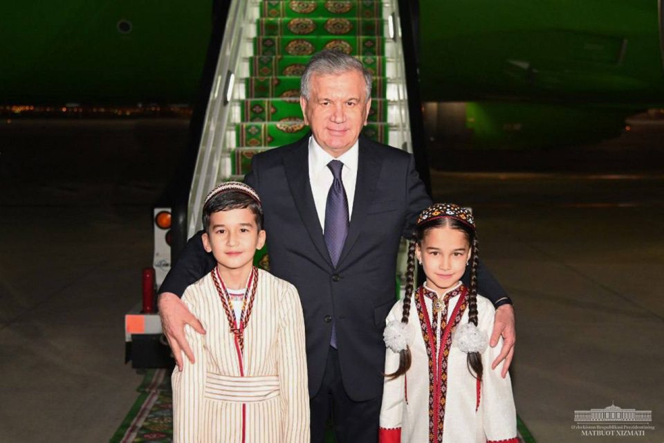 Özbegistanyň Prezidentini Aşgabadyň halkara howa menzilinde Türkmenistanyň Ministrler Kabinetiniň Başlygynyň orunbasary Batyr Atdaýew garşylady.