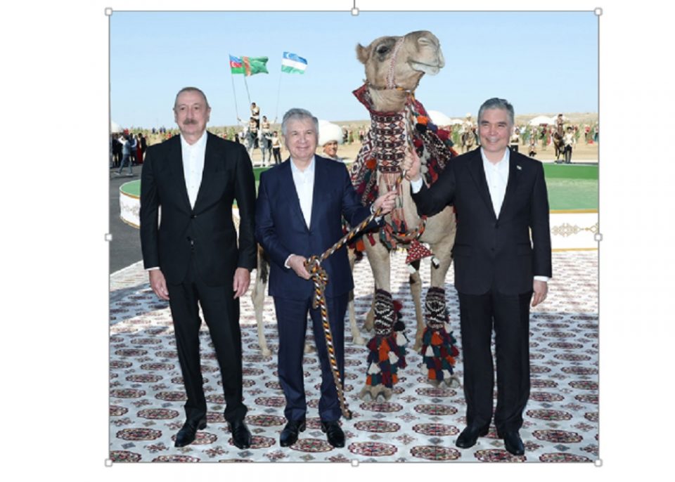 Bu dabaranyň çäklerinde Milli Liderimiz Gurbanguly Berdimuhamedow Türkmenistanyň Prezidentiniň hem-de türkmen halkynyň adyndan Özbegistan Respublikasynyň Prezidenti Şawkat Mirziýoýewe köşekli arwana düýe sowgat etdi.