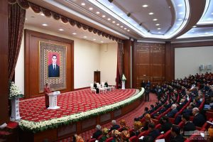 Dabara gatnaşyjylaryň el çarpmalary bilen belent mertebeli myhmana dabaraly ýagdaýda türkmen milli dony we telpegi geýdirilýär şeýle hem oňa degişli attestat we gül dessesi gowşurylýar.