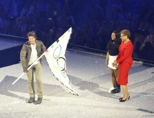 Ýapylyş dabarasynyň ahyrynda Olimpiýa oýunlarynda iň köp medal gazanan fransuz türgeni Leon Marşan elindäki çüýşedäki Olimpiýa alawyny öçürdi.