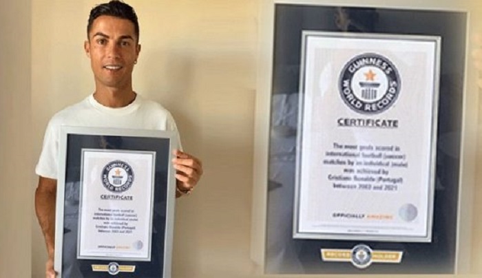 2022-nji ýyldaky dünýä çempionatynyň saýlama oýunlarynda Irlandiýa (2-1) garşy iki pökgi geçirip, milli ýygyndy toparynyň rekordyny täzeledi. Ronaldonyň milli ýygyndy üçin 111 goly bar. Şeýlelikde, Ronaldo Ginnesiň kitabyna girizildi we 36 ýaşly futbolça şahadatnama gowşuryldy.