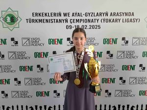 Второе место неожиданно для многих заняла 19-летняя Лала Шохрадова (2025), единственная девушка в когорте мужчин. Напомним, что Лала завоевала право участвовать в «мужской» высшей лиге, благодаря победе в открытой категории первой лиги в г.Мары месяцем ранее. В то же время ее прямое попадание в национальную женскую сборную без необходимости прохождения отбора через женскую высшую лигу, благодаря ее высокому рейтингу и соответствию другим требованиям шахматной федерации, позволили ей участвовать в более сильной по подбору игроков открытой высшей лиге. Набрав 7 очков из 11 и опередив следующих троих преследователей с таким же количеством баллов по дополнительному коэффициенту, Лала доказала, что сделала правильный выбор.
