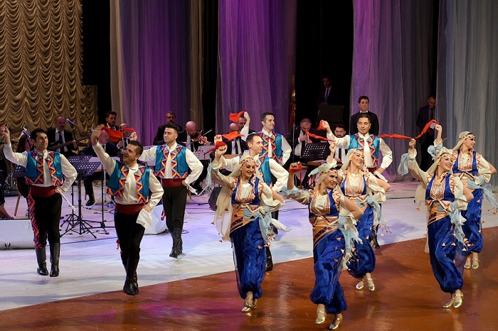 Также концерт украсили зажигательные танцевальные композиции Государственного ансамбля современного танца Анкары, исполнившего народные танцы.