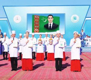Праздничную атмосферу торжеству придали выступления музыкальных и танцевальных коллективов. Председатель Меджлиса Туркменистана зачитала поздравительное Обращение Президента Сердара Бердымухамедова к работникам сферы здравоохранения и медицинской промышленности страны.