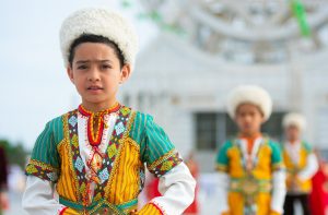 В Ашхабаде на площади «Алем» 300 детей станцевали традиционный танец куштдепди, как символ выражения прав детей и единства.