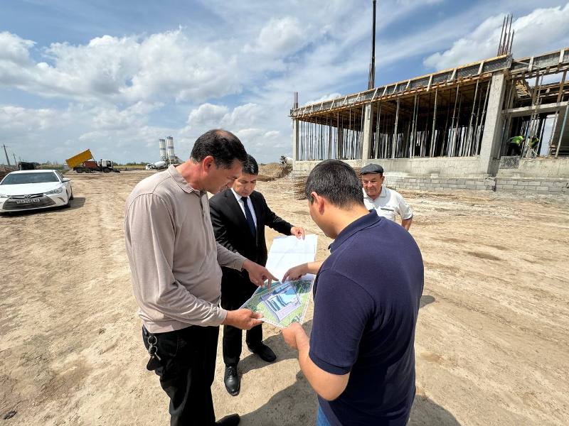 Здесь представители подрядной организации – ремонтно-строительного подразделения Центрального управления объединения потребительских обществ Министерства торговли и внешнеэкономических связей Туркменистана ознакомили Посла Республики Узбекистан с ходом строительных работ Торгового центра в узбекско-туркменской приграничной зоне на территории Дашогузского велаята.