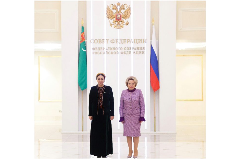 В ходе встречи Председатель Меджлиса Туркменистана передала Председателю Совета Федерации Федерального Собрания Российской Федерации Валентине Ивановне Матвиенко тёплые слова приветствия и добрые пожелания от уважаемого Президента Туркменистана Сердара Бердымухамедова и Национального Лидера туркменского народа, Председателя Халк Маслахаты Туркменистана Героя-Аркадага.