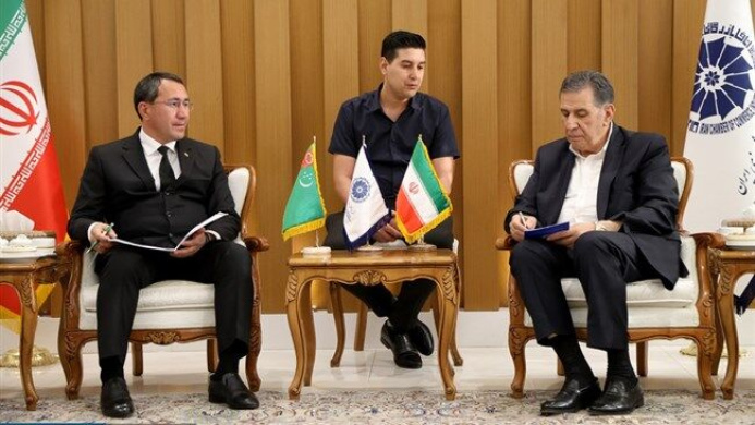 Председатель Торгово-промышленной палаты Туркменистана Мерген Гурдов и президент Торгово-промышленной, горнодобывающей и сельскохозяйственной палаты Ирана Самед Хасанзаде на встрече в Тегеране, 27 апреля, рассмотрели вопросы расширение торговли между двумя странами.
