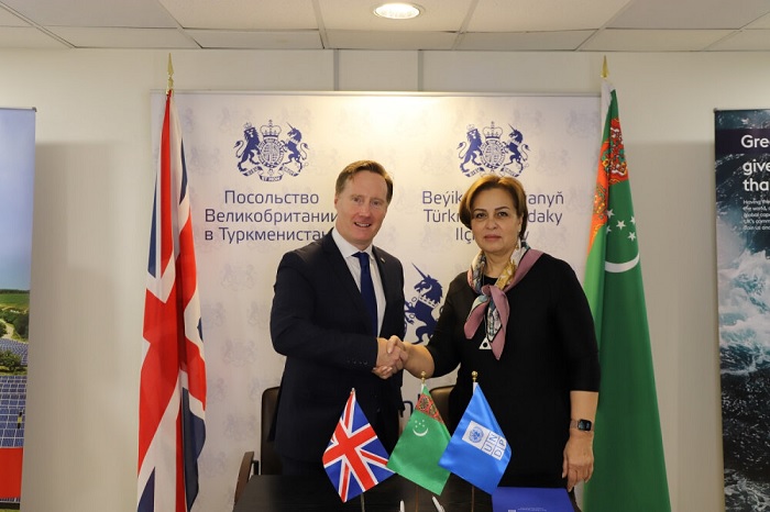 В церемонии подписания приняли участие посол Великобритании в Туркменистане Стивен Конлон и постоянный представитель ПРООН в Туркменистане Наринэ Саакян.