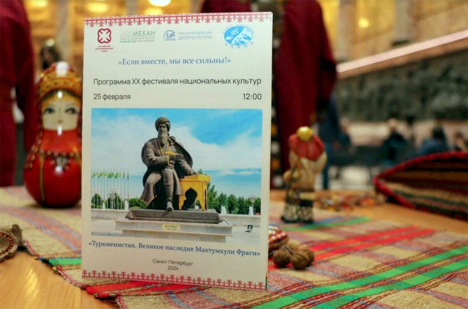 По случаю празднования 300-летия со дня рождения великого поэта и мыслителя Востока Махтумкули Фраги Общество туркменской культуры в Санкт-Петербурге «Мекан» совместно с центром образования «Анима» при поддержке Санкт-Петербургского Дома национальностей и Правительства Санкт-Петербурга, организовало интерактивное мероприятие «Туркменистан. Великое наследие Махтумкули Фраги».