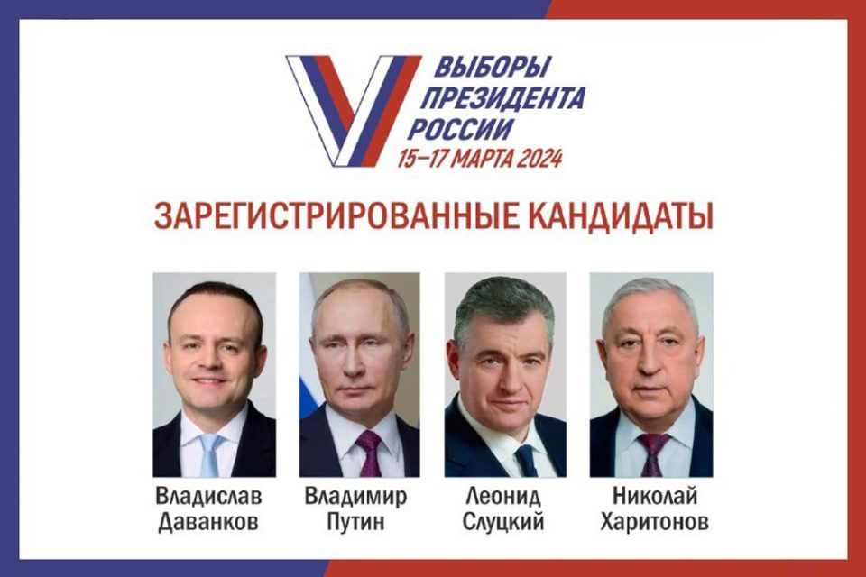 2024-nji ýyldaky prezident saýlawyna 4 dalaşgär gatnaşýar. Olar – Döwlet Dumasynyň ozalky başlygy, “Täze adamlar” partiýasynyň dalaşgäri Wladislaw Dawankow, garaşsyz dalaşgär Russiýanyň Prezidenti Wladimir Putin, LDPR partiýasynyň ýolbaşçysy Leonid Sluskiý we KPRF MK agzasy Nikolaý Haritonow.