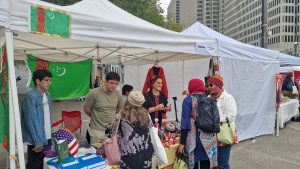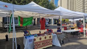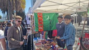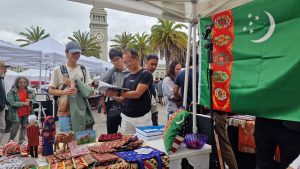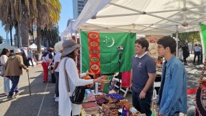 Kaliforniýada ýaşaýan türkmen maşgalalarynyň taýýarlan milli pişmeleri ýüzlerçe myhmana hödürlenildi. Sergidäki türkmen stendinde hiç zat satylmady, emma türkmen el işleri myhmanlarda aýratyn gyzyklanma döretdi. Bu ýagdaý Amerikada türkmen sungat we el işleri bazaryny döretmek üçin giň mümkinçilikleriň bardygyny ýene bir gezek görkezdi.