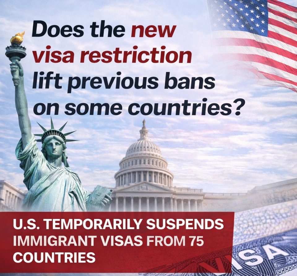 ABŞ-nyň Daşary işler ministrliginiň resmi X (@StateDept) hasabyndan ýaýradylan beýannama görä, Amerika 75 döwletiň raýatlary üçin immigrasiýa wizalarynyň gaýtadan işlenilmegini wagtlaýyn togtadýar.