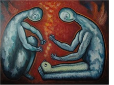«Toba» (Hudožnik bu işinde nesiliň öňünde jemgyýetiň jogapkärdigini, oňa oýlanşykly garalmagyny soraýar).