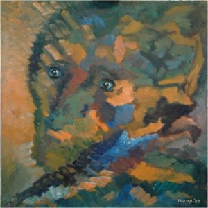 «Awtoportret» (Iri çotga bilen ýerine ýetirilen psihologik abstraksiýa işi.