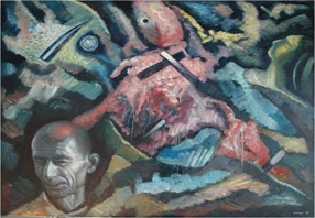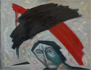 «Agtyklam» (Psihologik abstraksiýa. Bu işde hudožnik öz awtoportretiniň üsti bilen