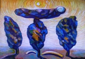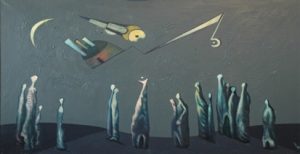 «Kalbyň sesi» (Hudožnik bu işinde psihologik abstraksiýanyň üsti bilen ynsanyň emosiýasyny täsirli edip beýan edýär).