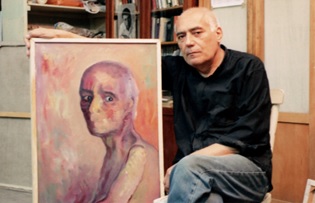 «Şahyr». (Hudožnik bu işinde şahyryň dünýäsini garamtyl reňkleriň ylaýtada ýaşyl reňkiň üsti bilen geçen günlere, ýatlamalara alyp gidýär).