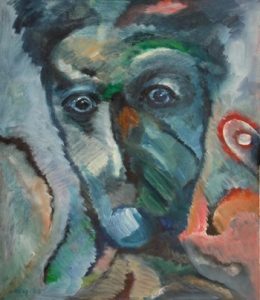 «Awtoportret» (Iri çotga bilen ýerine ýetirilen psihologik abstraksiýa işi.