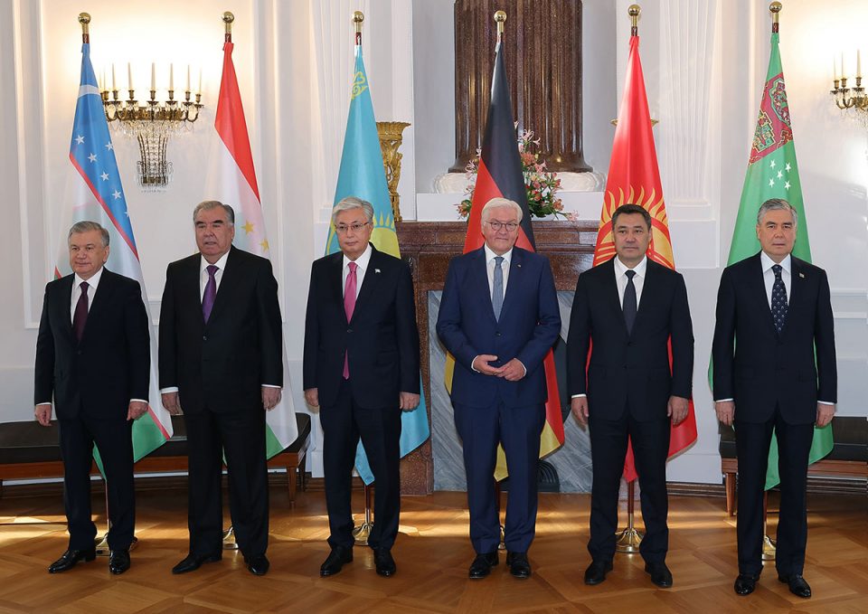 Almanya Cumhurbaşkanı Frank-Walter Steinmeier bugün başkent Berlin’de Kazakistan Cumhurbaşkanı Kasım Cömert Tokayev, Kırgızistan Cumhurbaşkanı Sadır Caparov, Tacikistan Cumhurbaşkanı İmamali Rahman, Türkmenistan Halk Maslahatı Başkanı Gurbanguli Berdimuhamedov ve Özbekistan Cumhurbaşkanı Şevket Mirziyoyev ile Cumhurbaşkanlığı Sarayı’nda düzenlenen çalışma kahvaltısında bir araya geldi. Kahvaltının ardından 5 lider, Başbakan Olaf Scholz ile çalışma yemeğinde buluştu.