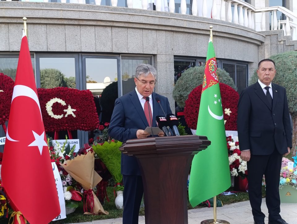 Daha sonra Türkmenistan Bakanlar Kurulu Başkan Yardımcısı Hocamurat Geldimuradov konuşma yaparak, kardeş Türk halkını bu önemli bayram nedeniyle içtenlikle tebrik etti ve bu tarihi günün “kardeş Türk halkının bağımsızlığa, ekonomik ve manevi gelişmeye, yaratıcılığa olan kararlılığını simgelediğini” vurguladı.