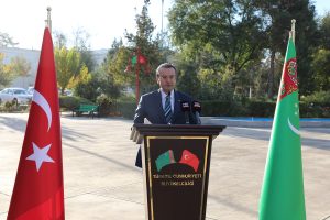 Aşkabat Büyükelçi Oral Atatürk’ü Türkmenistan’da Büyükelçiliğin tam karşısında bulunan kendi adını taşıyan parkta hem de kendi anıtı önünde saygıyla anmanın mutluluğunu yaşadıklarını ifade etti.